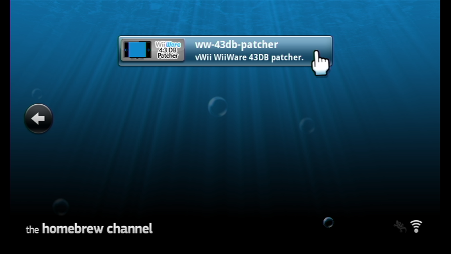 WiiWare 4:3 DB Patcher is a homebrew app that patches the vWii's 4:3 aspect ratio database, such that WiiWare and Virtual Console titles may utilize the 16:9 aspect ratio where they normally cannot.