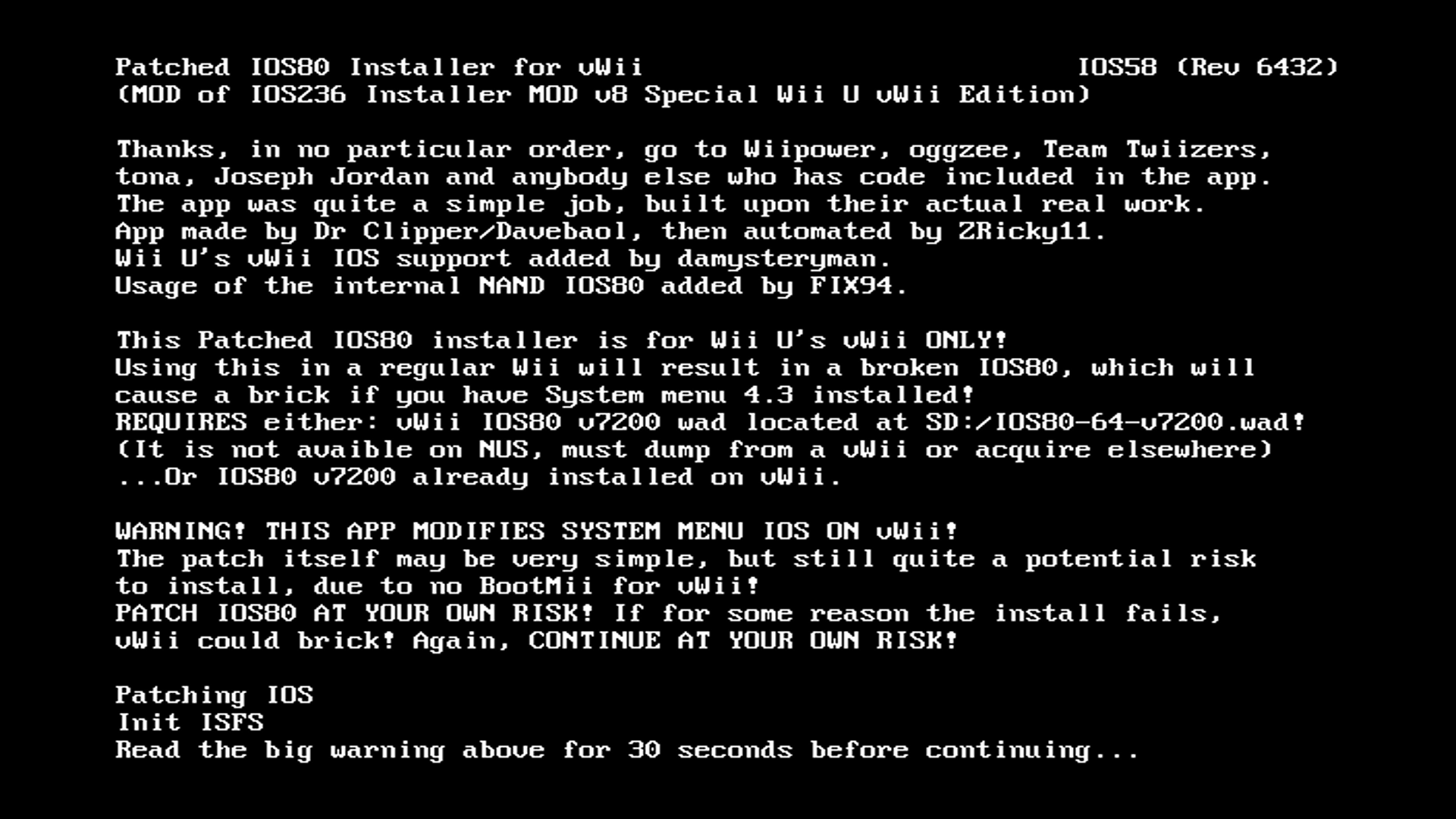 - Patched IOS 80 Installer for vWii