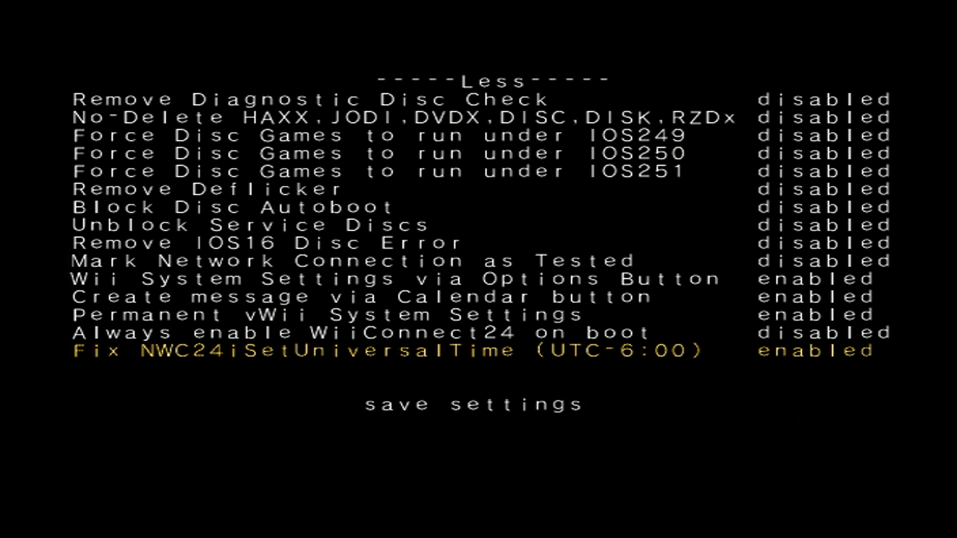 If you are on the Wii U, please ensure that you install WiiVCLaunch to ensure that your system settings are not overwritten when you run Wii Virtual Console games in the Wii U menu.