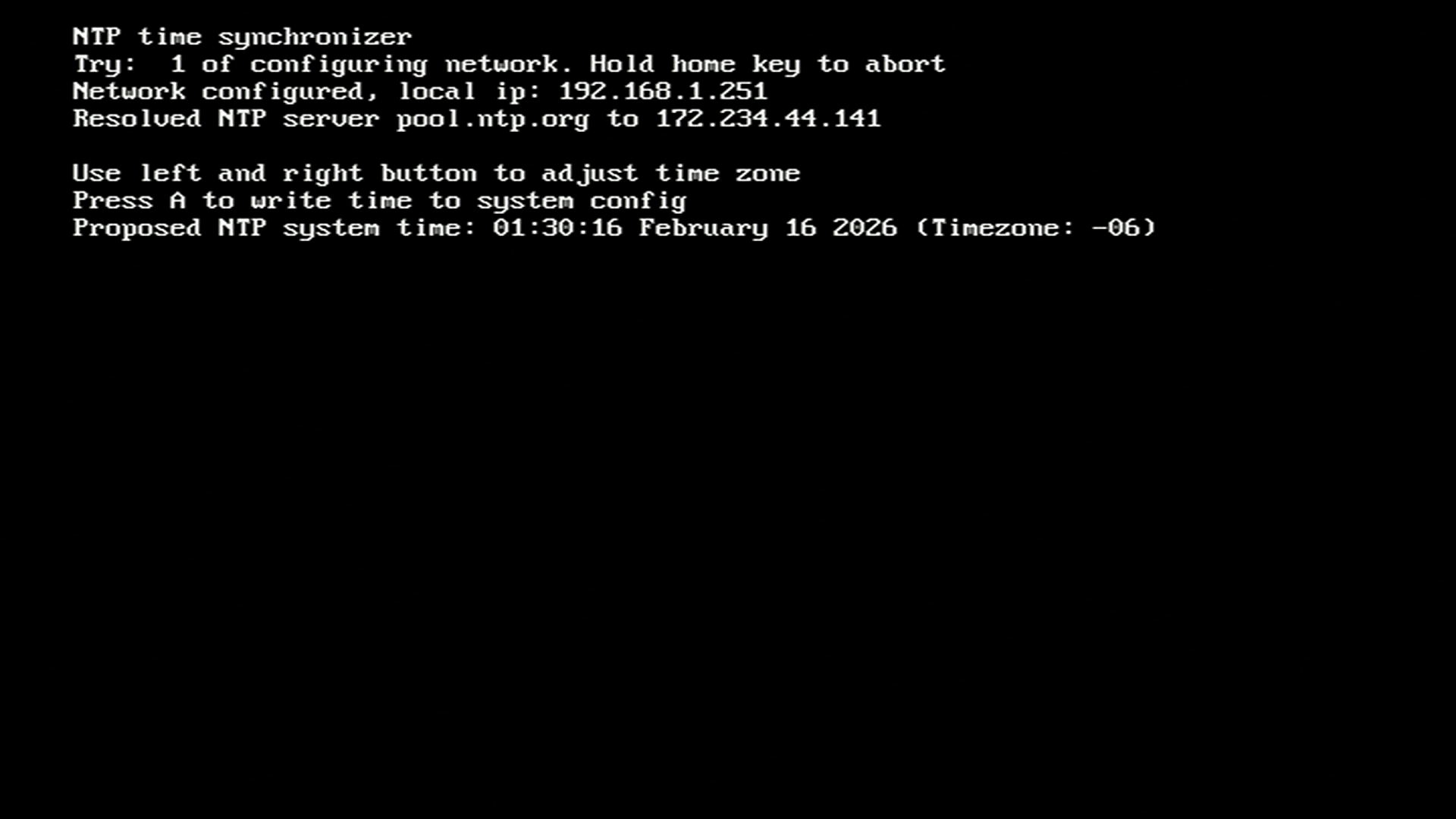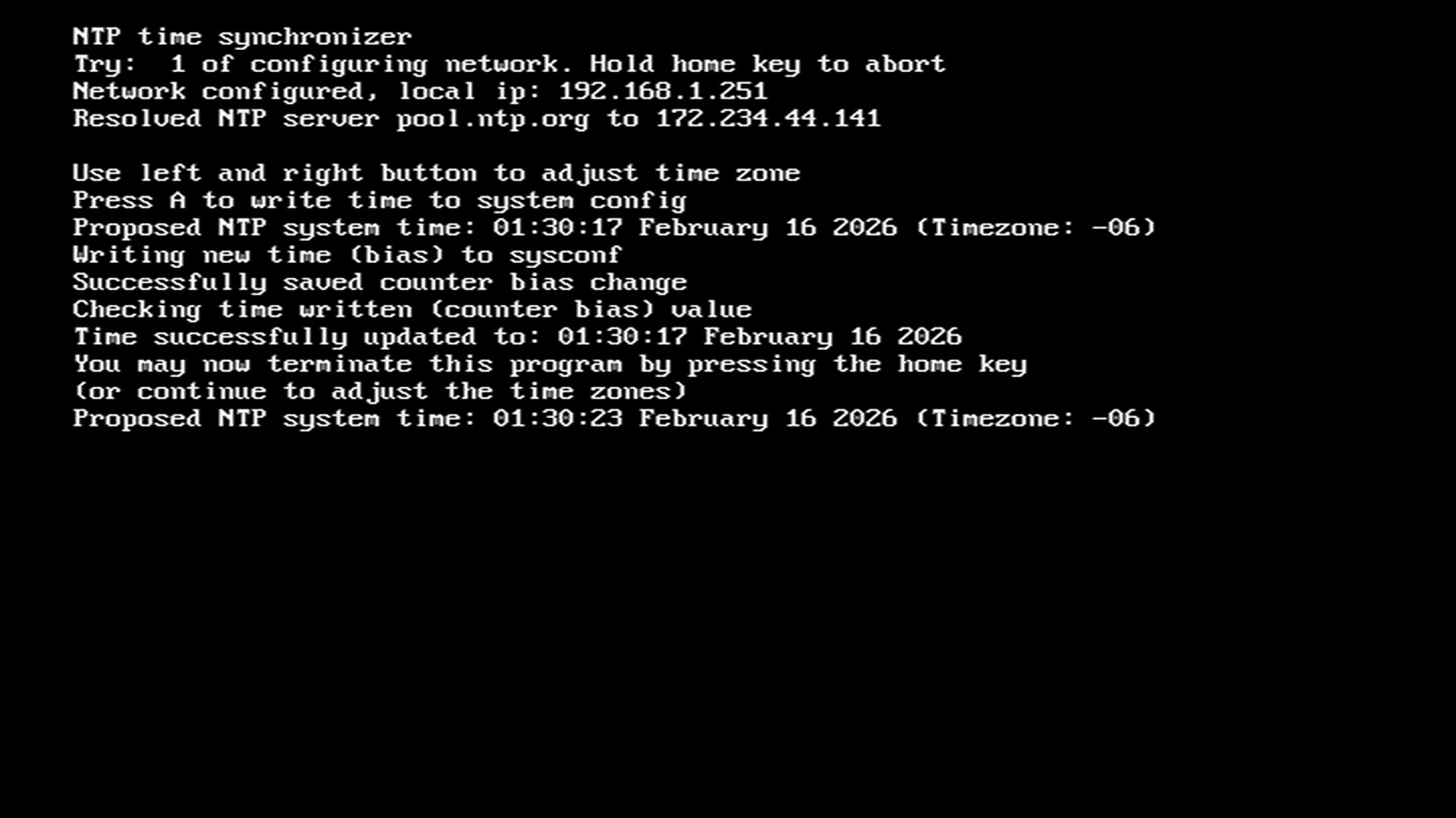 Use the left and right arrows on the +Control Pad to select the time zone that matches your current time, then press the A button to write it to your system configuration.